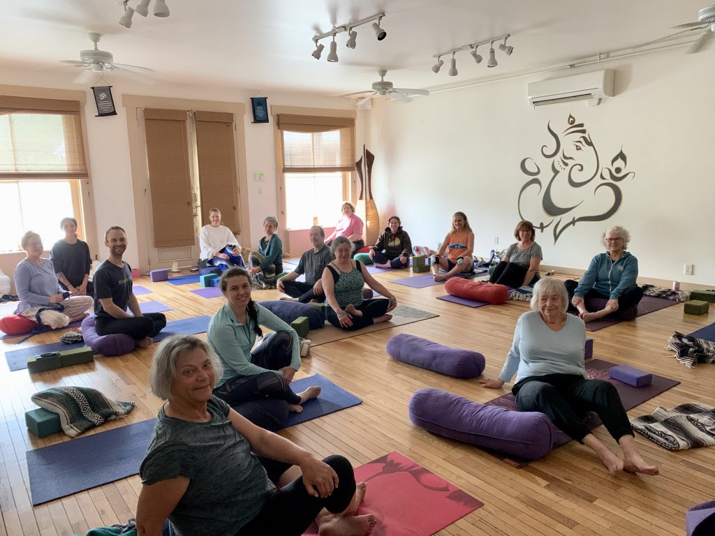 Enjoy daily yoga classes with Karyn Force in our spacious yoga studio including a variety of classes; Gentle, All Levels, and Reiki Infused Restorative Yoga.